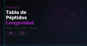 - Tabla comparativa de péptidos: 15 péptidos de longevidad con evidencia científica (2026)Project 170 · Recurso actualizado 2026 Tabla comparativa de péptidospara longevidad y biohacking Comparativa basada en evidencia de los 15 péptidos más estudiados en el contexto de longevidad, regeneración y optimización del rendimiento. Ordenada por nivel de evidencia científica disponible. ⚠️ Aviso legal: Ninguno de los péptidos listados en esta... Lee más: Tabla comparativa de péptidos: 15 péptidos de longevidad con evidencia científica (2026)